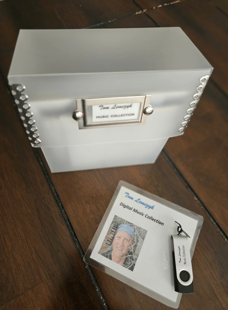 Digitals purchased thru me directly will come on a USB thumb drive (MP3s), and all my latest 5 albums (65 tracks!) can be purchased for $25.